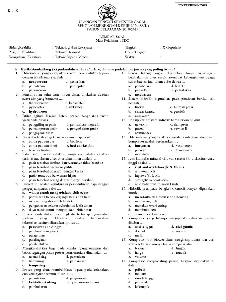 Download soal pas matematika peminatan kelas xii. Pelajaran dan soal bahasa inggris kelas 10 sma seperti membuka lembaran yang baru. soal yang akan kami bagikan adalah soal tdo kelas x semester 1. Namun demikian, tidak ada jaminan bahwa seratus persen tepat. soal uas kejuruan otomotif kelas x.