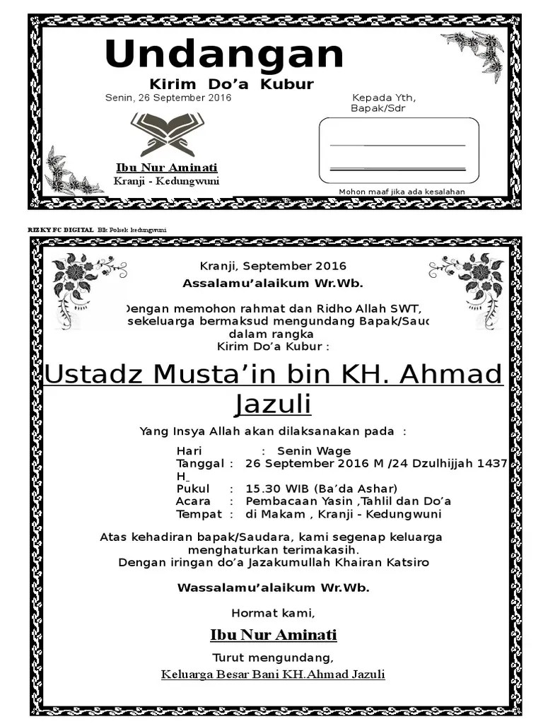 Format undangan untuk acara tahlil tinggal edit langsung print contoh surat undangan haul. Contoh surat undangan tahlil 40 100 .
